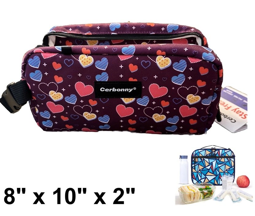 cerbonny Freezable Lunch Bag, Freezable Snack Bag, Mini Cooler Bag for Travel/Work/School - 8" x 10" x 2" - purple love/purple