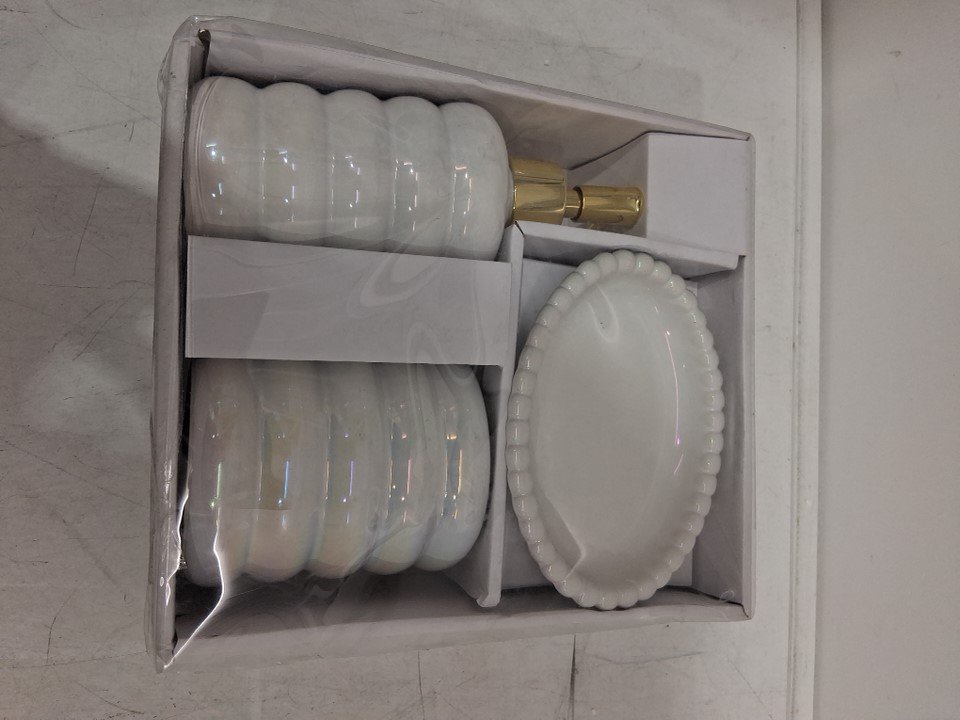 3pc TARGET BULLSEYE CERAMIC BATHROOM SET - Toothbrush Holder, SOAP Dispenser DISH- 8.1oz soap dispensor- 12.5oz tooth brush holder
