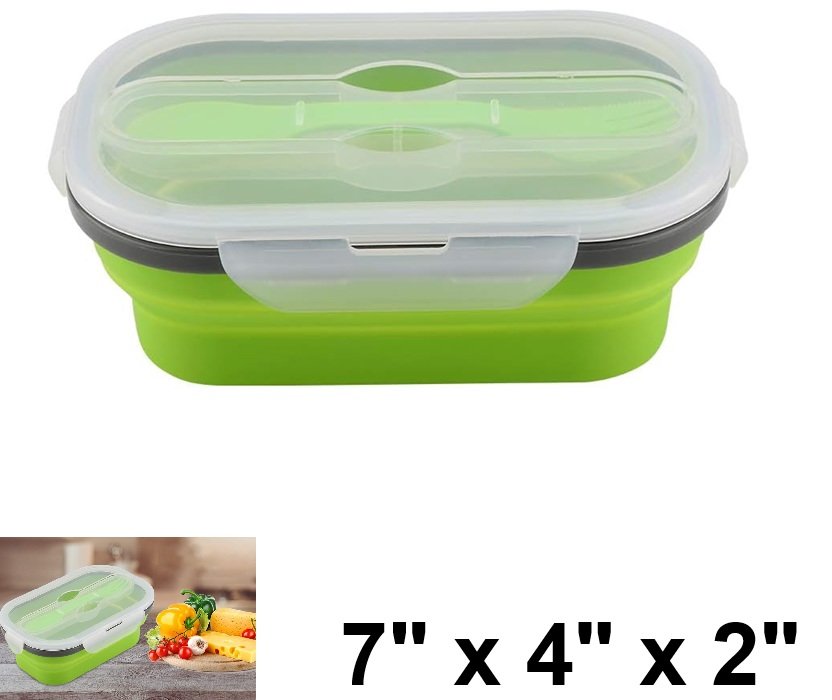 JOROBURO Temperature Resistant Silicone Bento Lunch Box with fork - 7" x 4" x 2" - green