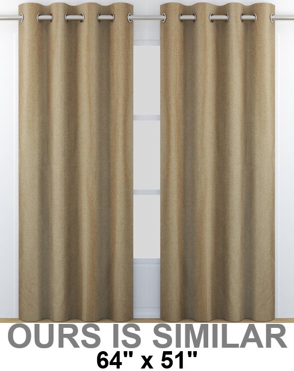 (2 PANEL) light filtering grommet top curtains - 64" x 51" each - brown/burlap