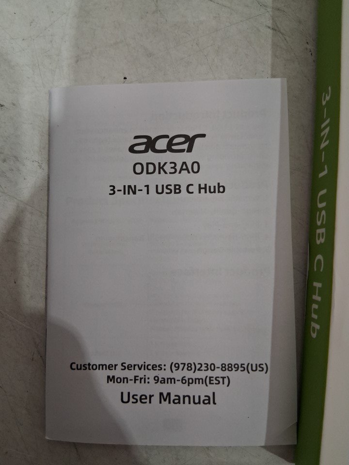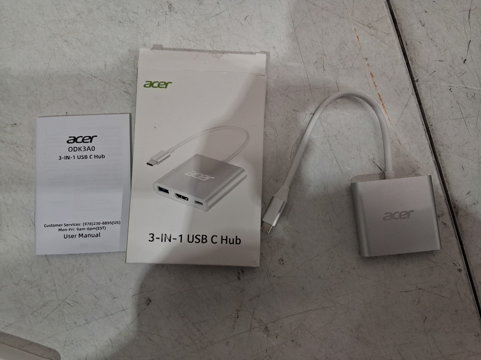 Acer 3 in 1 USB C to HDMI Multi-Port Adapter - 100W Charging for USB C Phones / LAPTOP - 5Gbps USB 3.0 Gen1 Data Port 4K HDMI Port - WHITE (MODEL:ODK3A0)