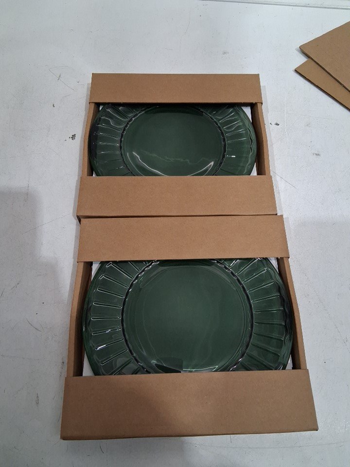2 (2PK) Bullseye's Playground Round Glass Plates (4 total) - 8" - green