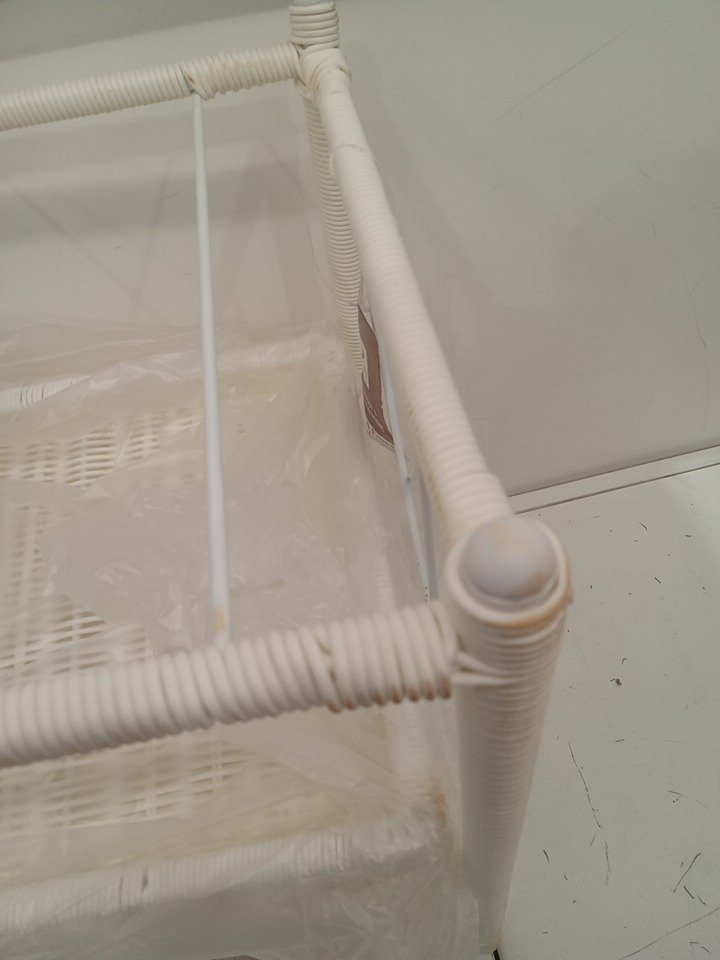 there is a dent to the back support bar and the wicker wrapping is off the bar, please see photos