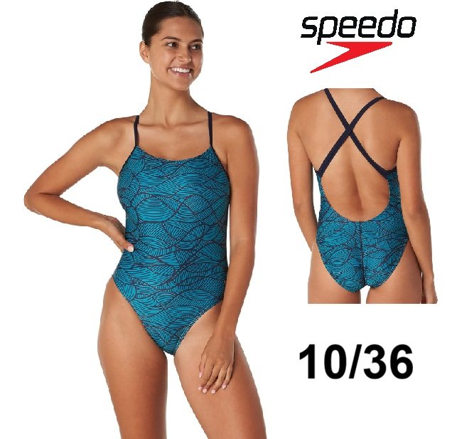 women's Speedo Printed Volt Back One Piece Swimsuit - 10/36 - Turkish Sea (STYLE: ‎8-0024150138426)