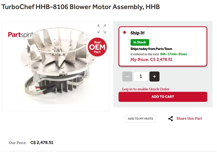 TurboChef Blower Motor Assembly For Rapid Cook Ovens - Silver (Model: HHB-8106)