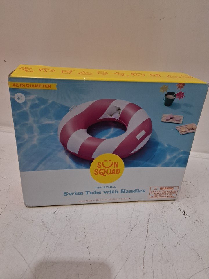 SUN SQUAD IFLATABLE SWIM TUBE WITH HANDLES - 42" - PINK/WHITE