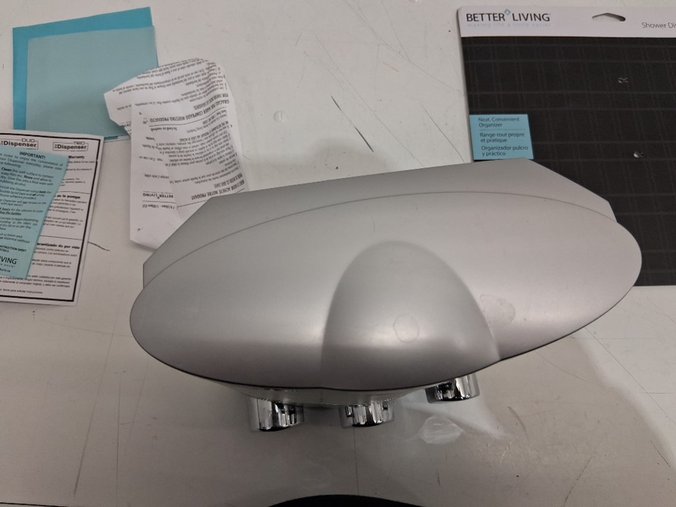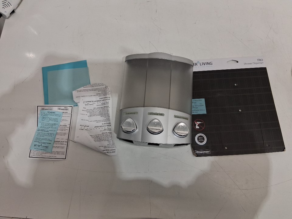 better living Products Euro Series TRIO Three Chamber Soap and Shower Dispenser- grey/clear