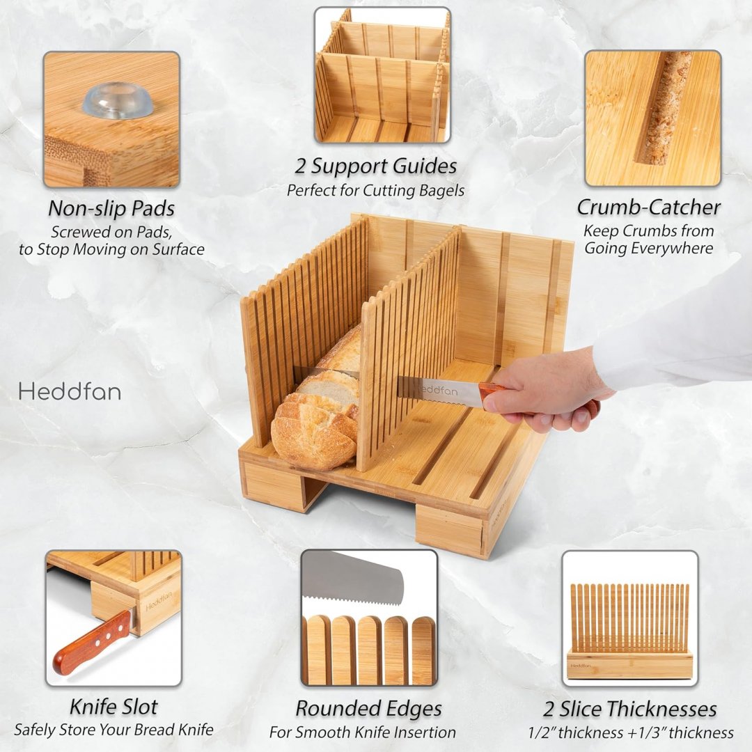 heddfan adjustable bamboo bread slicer with 12" knife - 2"-9.8" x 11.3" x 7.1" - bamboo/brown
