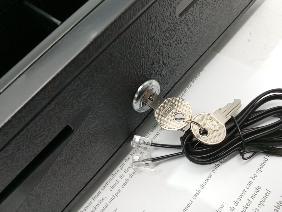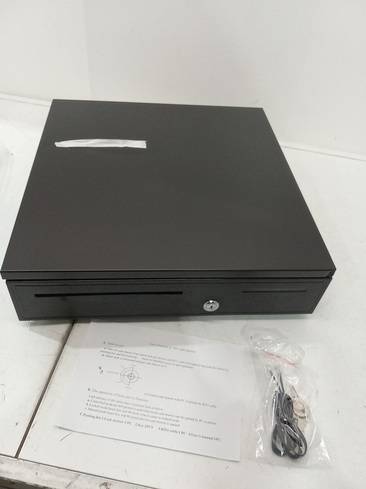Flexzion metal Cash Drawer for Small Businesses with Electronic RJ-11 Point of Sale (POS) Connection - 16" - black (model:‎CASH_DRA_HY405_BLK)