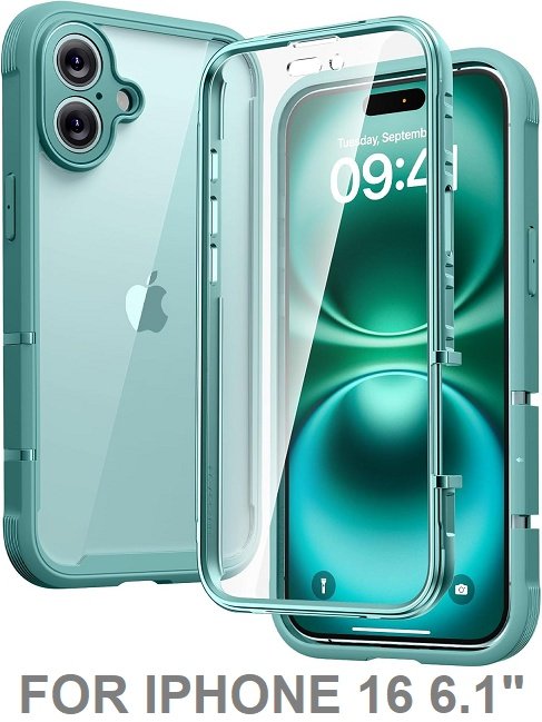 diaclara full body phone case with built-in touch sensitive anti-scratch screen protector - for iphone 16 6.1" - teal (model: 901BDIP16TQE)