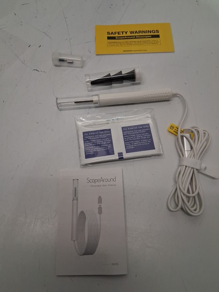 Scopearound USB-c otoscope camera with ear wax removal tools - White