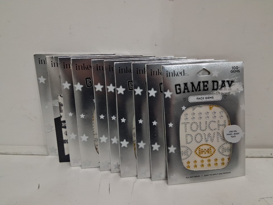 10 (100PK) Inked Game Day Face Gems - Assorted