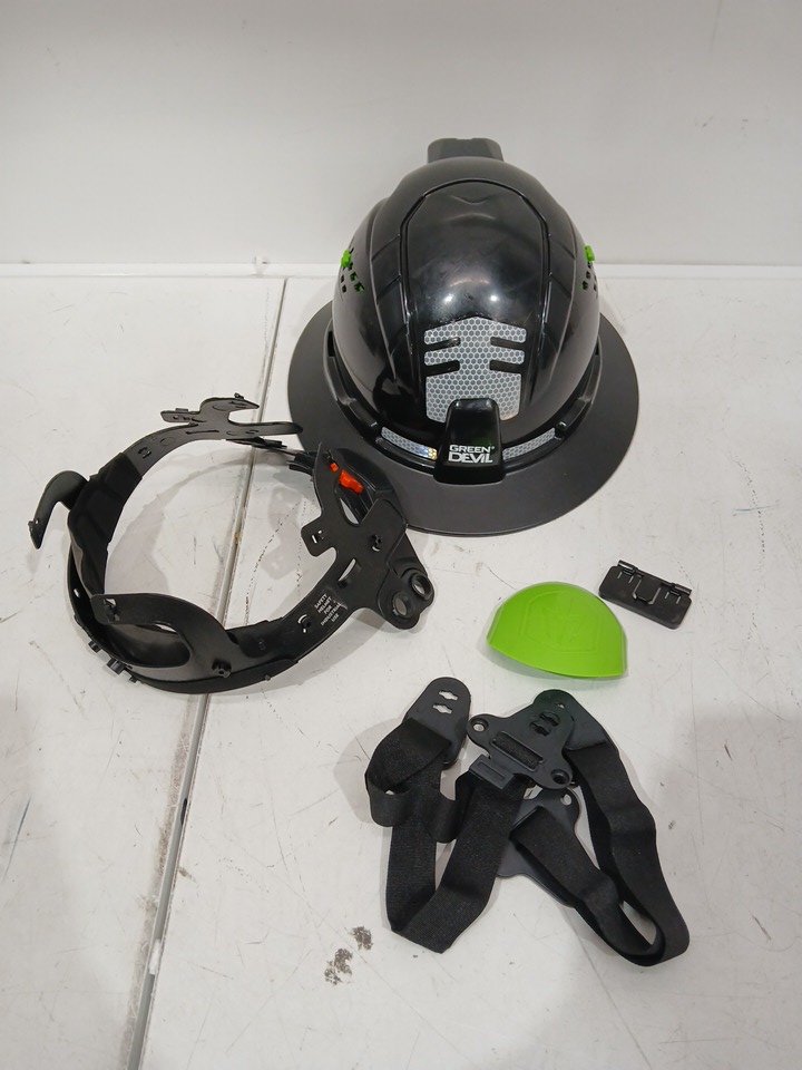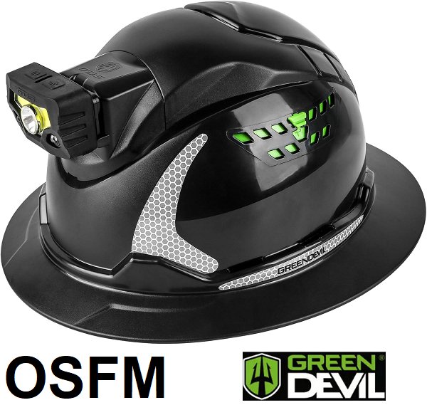 adult unisex GREEN DEVIL Matrix Full Brim Vented Construction Hard Hat with Headlight - one size fits most - black (style: CA-X3-LAMP-CARBON B)