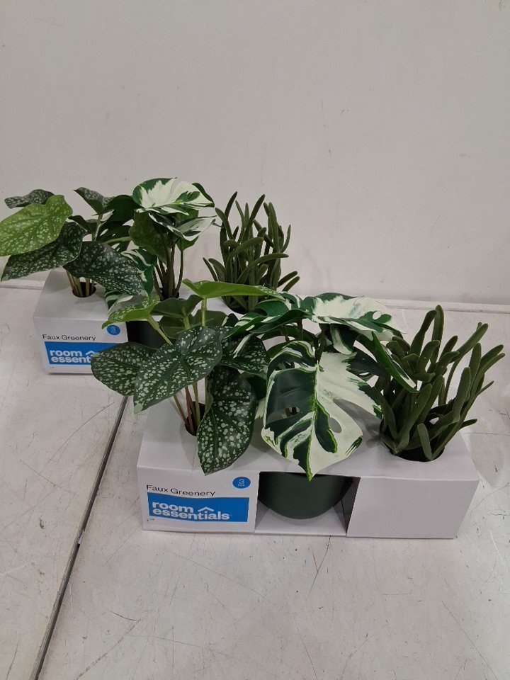 3pk room essentials decorative faux GREENERY plants - multi-colour POTS