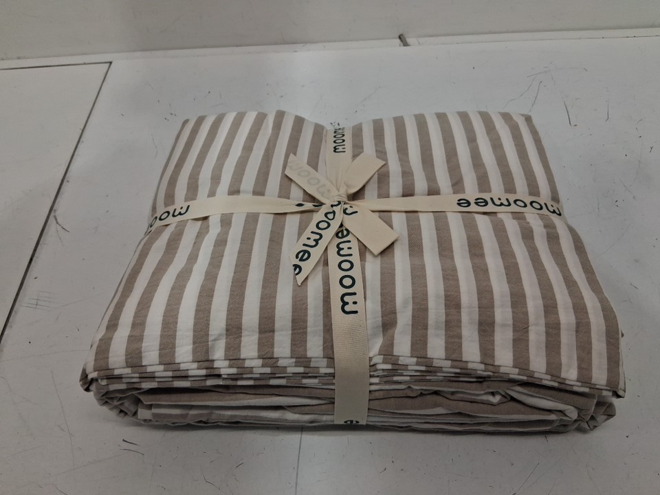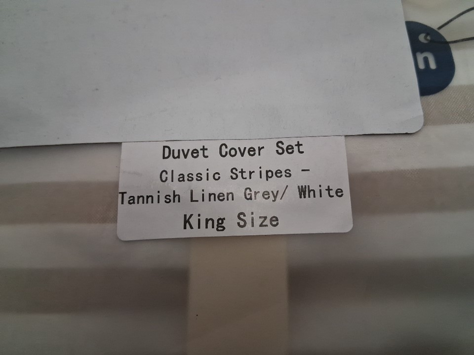 3pc moomee 100% Washed Cotton Linen - Textured Breathable duvet cover set - CLASSIC STRIPES - king - TANNISH LINEN GREY/WHITE
