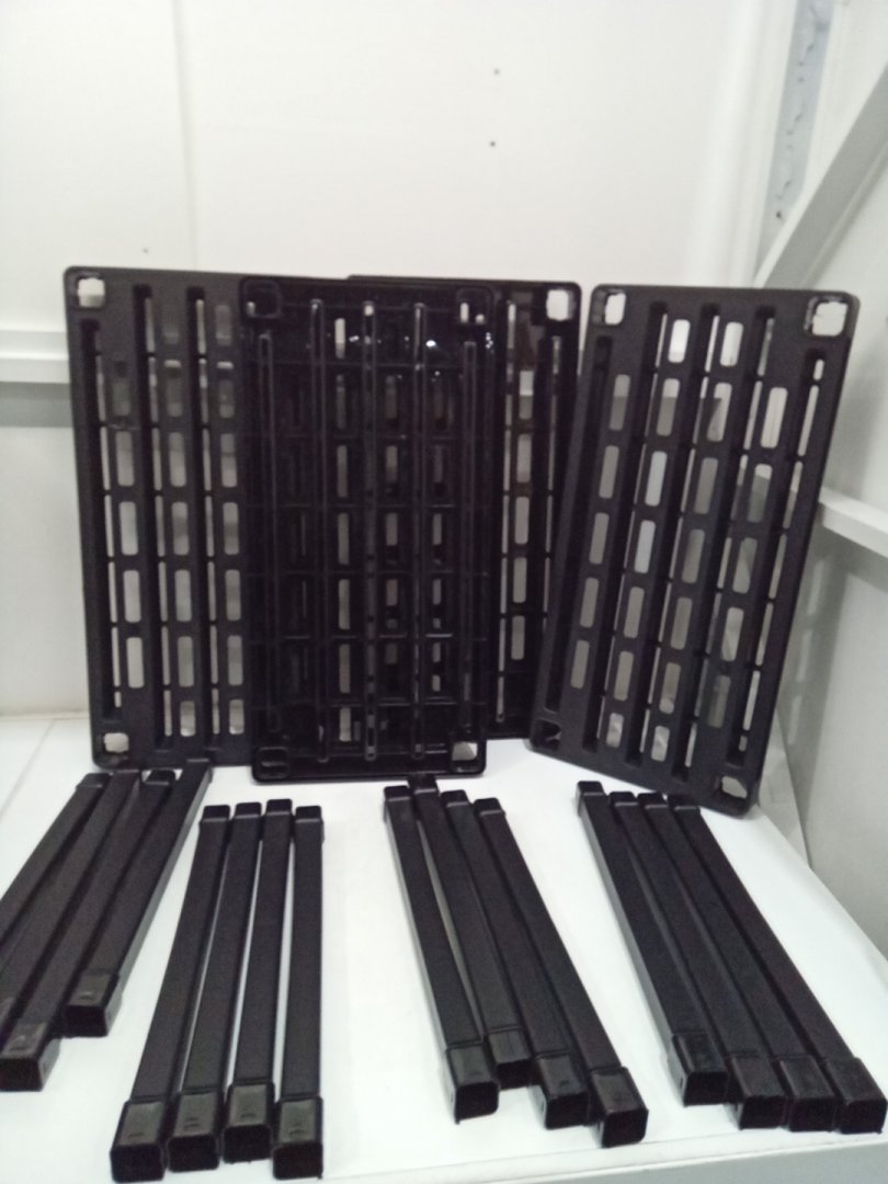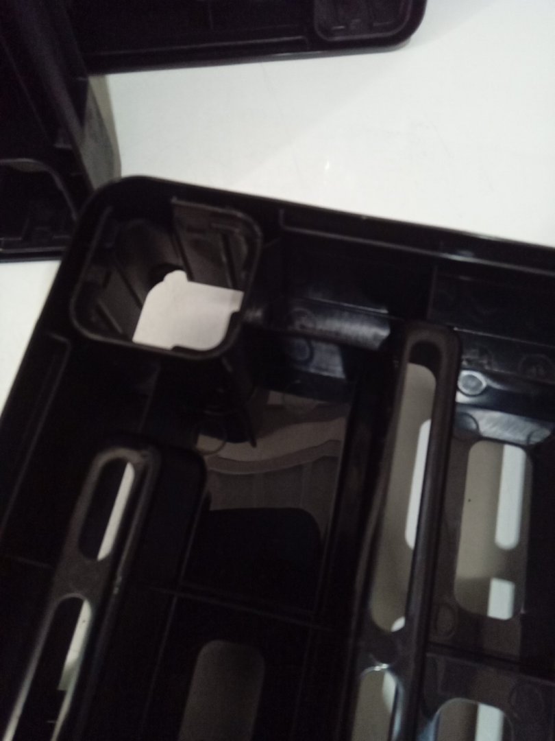 Some scuffs on the legs suggest prior use. One of the shelves has a crack on the inside, and one of the tiers is missing. Please see photos.