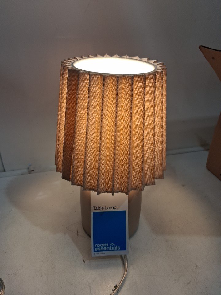 Room essentials table lamp with inline toggle switch and pleated shade.