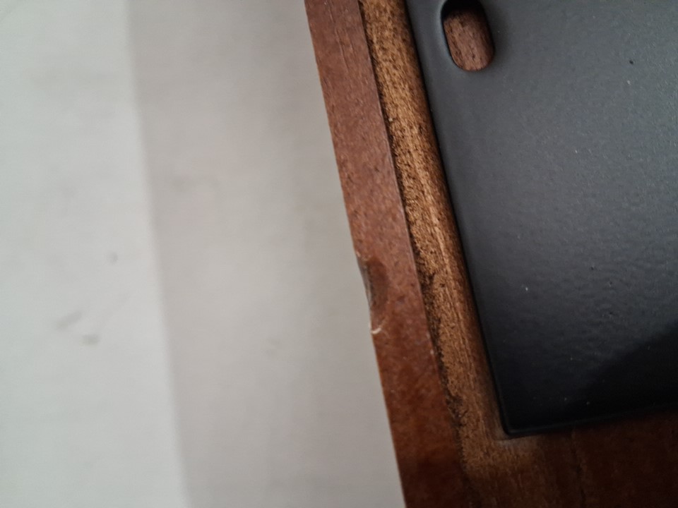 chips and scratches in wood where it was exposed in packaging. most likely poor shipping conditions.
