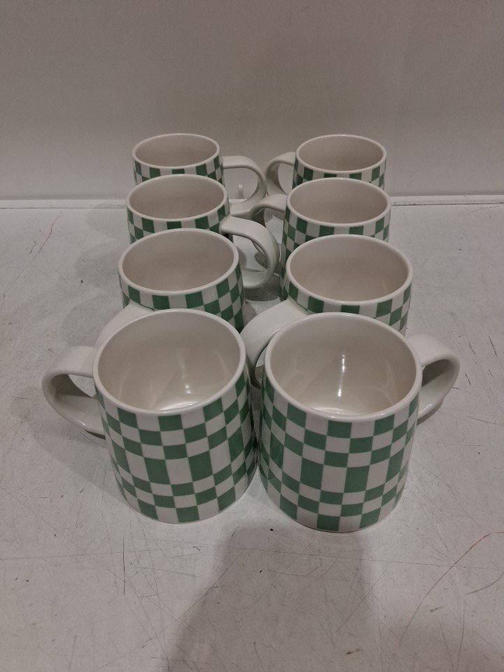 8 ASSORTED Room Essentials stoneware checkered Mug - 16oz- green/white/purple