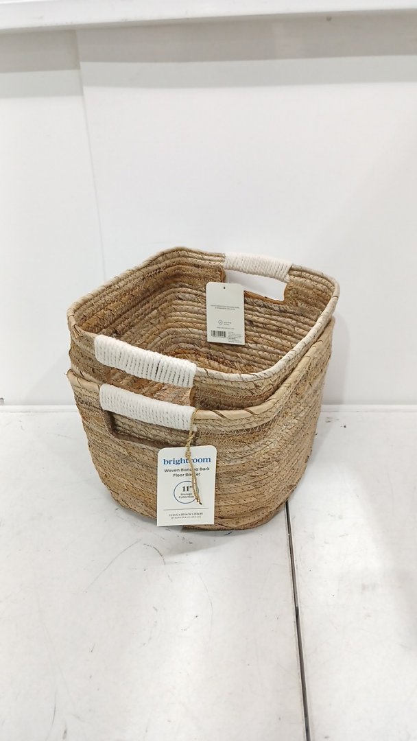 2pk brightroom Woven Rectangular Banana bark Basket - 11" x 10" x 8 " - natural