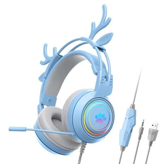 e-sport Wired cute deer ears gaming headset - blue (model:sy-g25)