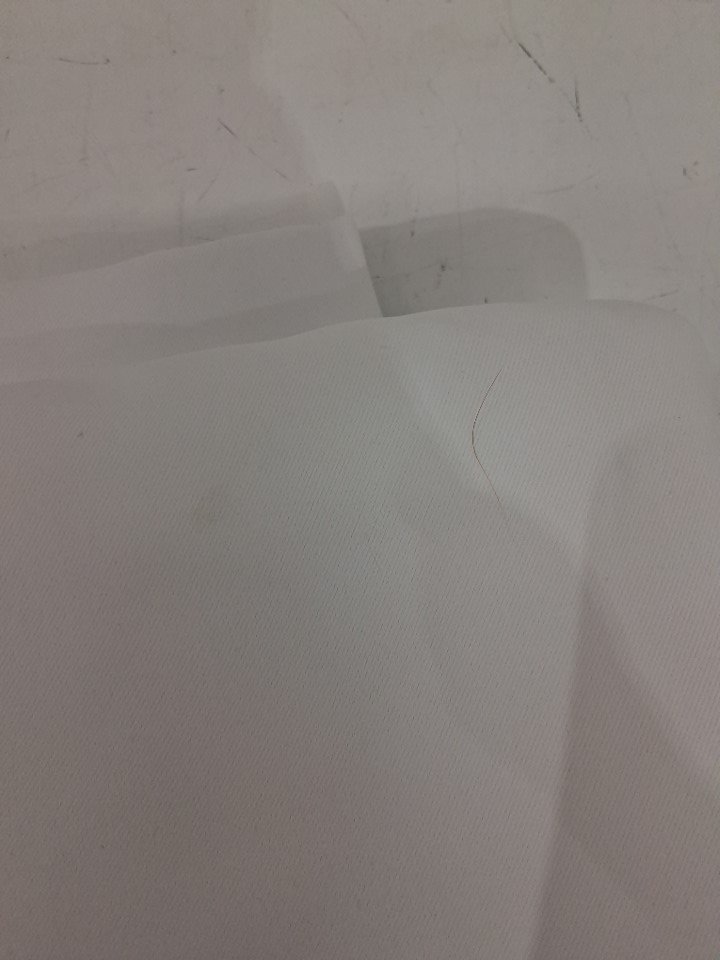 Curtains have loose pet hair and small discolored stains on them