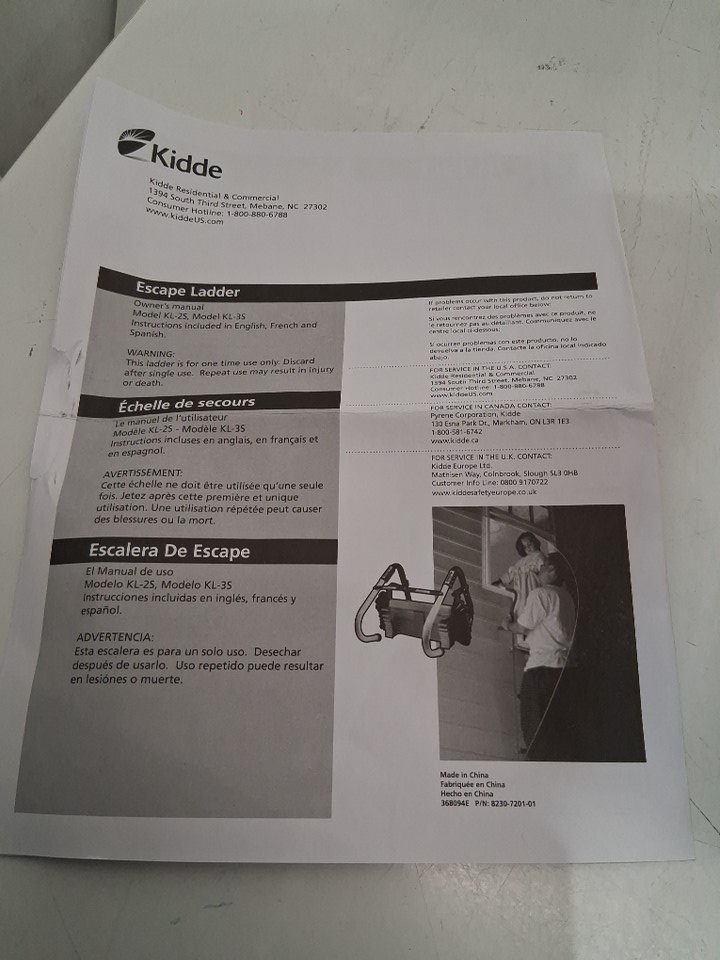 KIDDE 2-STORY 13FT EMERGENCY ESCAPE LADDER WITH ANTI-SLIP RUNGS (MODEL: KL-2S)