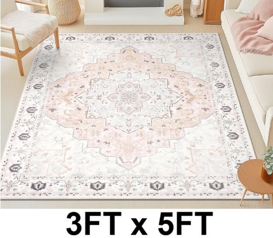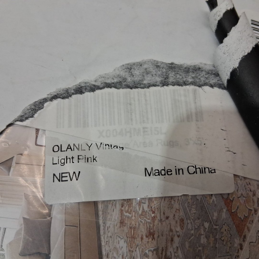 OLANLY VINTAGE AREA RUG WITH NON SLIP BACK - 3FT X 5FT - SOFT FLORAL LIGHT PINK (MODEL: ‎YSDT16F8-92X153-CA)