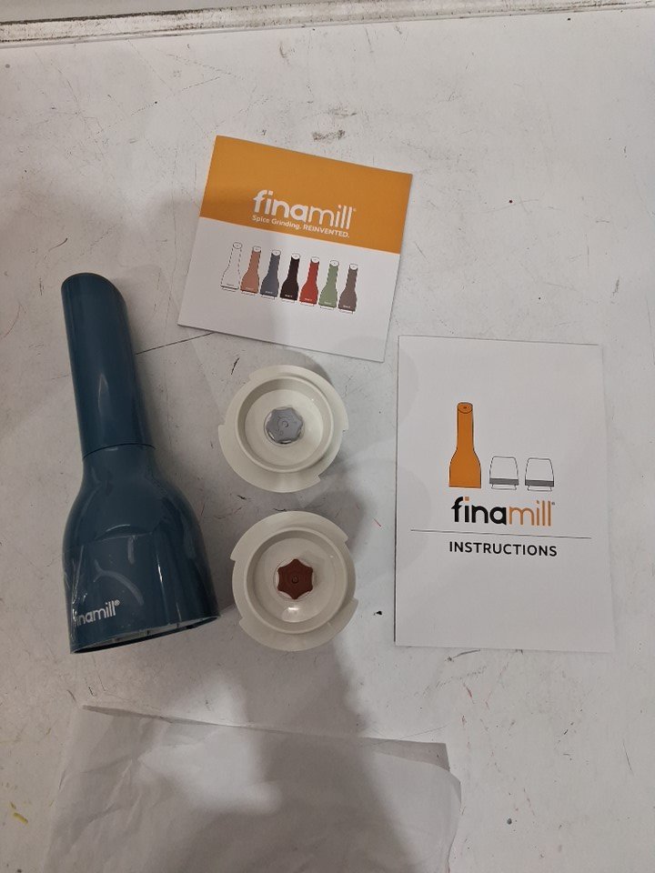 FINAMILL BATTERY-OPERATED PEPPER MILL SPICE GRINDER WITH 2 QUICK-CHANGE PROPLUS PODS, ADJUSTABLE COARSENESS, ONE-TOUCH OPERATION & LED LIGHT - navy blue (model: gp180134-12blu)