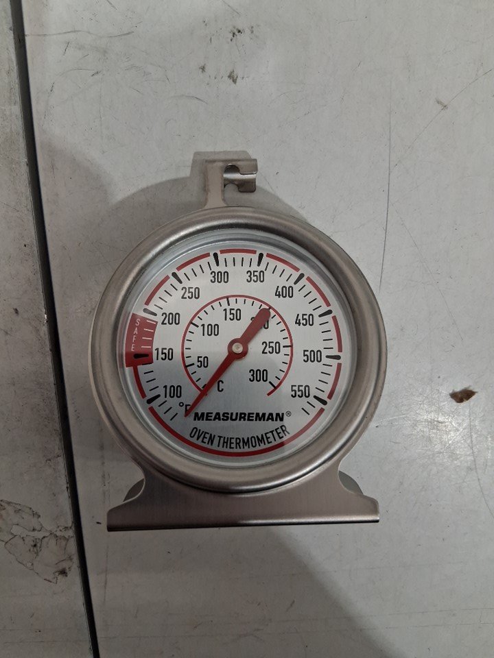 MEASUREMAN Heavy Duty Oven Thermometer with Hook AND Blow-Out at Back - 100-550F/C - 2.5% Accuracy - STAINLESS STEEL (MODEL: MC019)