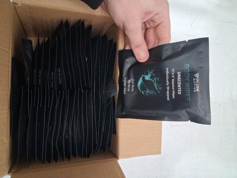 40PK Pure Active Unscented Individually Wrapped Personal Hygiene Body Wipes - 12" x 12" - Black