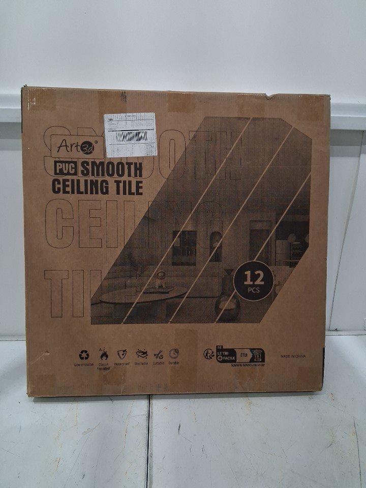 12pk ART3D smooth drop pvc ceiling tile - 24" x 24" - white (model: c10920)