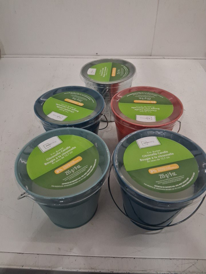 5 MAINSTAYS CITRONELLA CANDLE BUCKETS - 5" - 9 OZ - ASSORTED COLORS