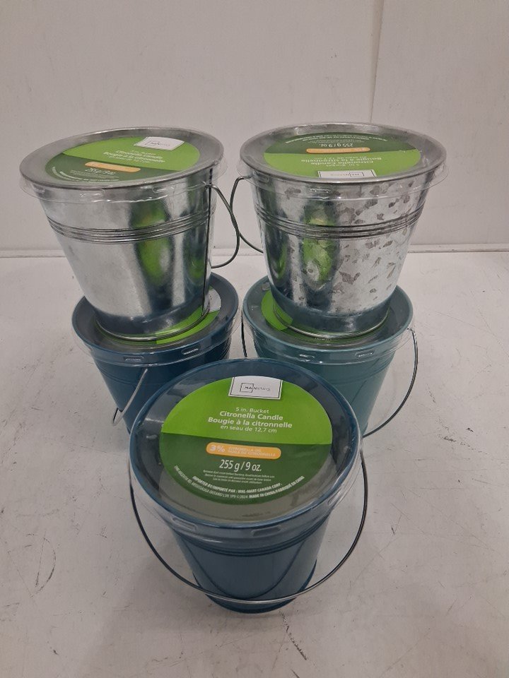 5 MAINSTAYS CITRONELLA CANDLE BUCKETS - 5" - 9 OZ - ASSORTED COLORS
