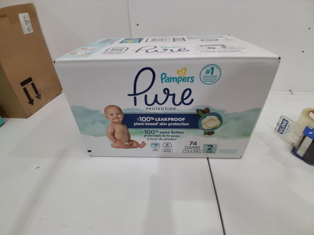74PK PAMPERS PURE PROTECTION hypoallergenic DIAPERS - size 2 (12LB-18LB)