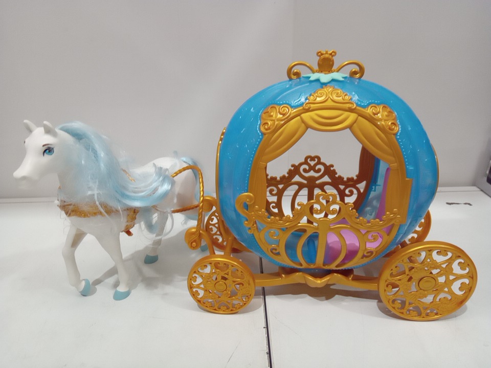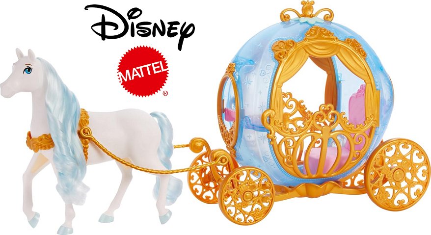 kids Mattel Disney Princess Cinderella’s Rolling Carriage with Horse - white/blue/gold - (model: HYM33)