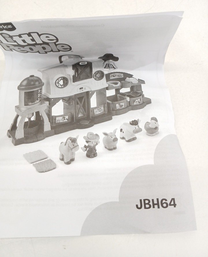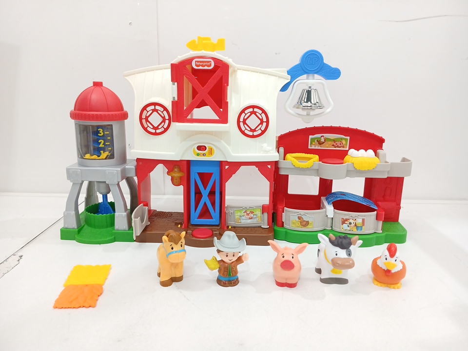 FISHER-PRICE LITTLE PEOPLE CARING FOR ANIMALS FARM RESTAGE CHILDRENS TOY, TEACHES COUNTING, OPPOSITES, ANIMAL SOUNDS AND COLORS (MODEL: jbh64-9997)