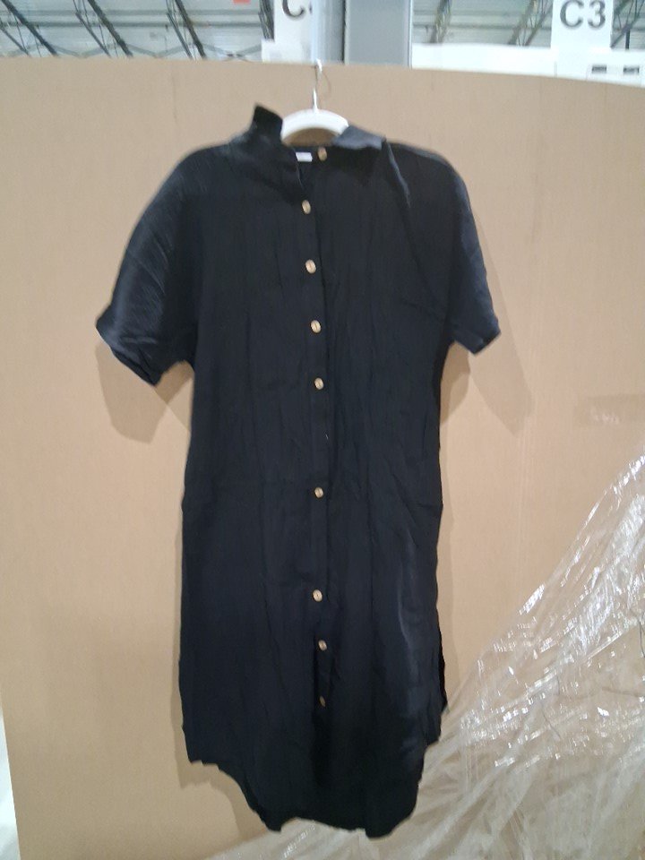 Women's bsubseach short sleeve button up cover up with slit and twist knot key hole opening in the back - small - black