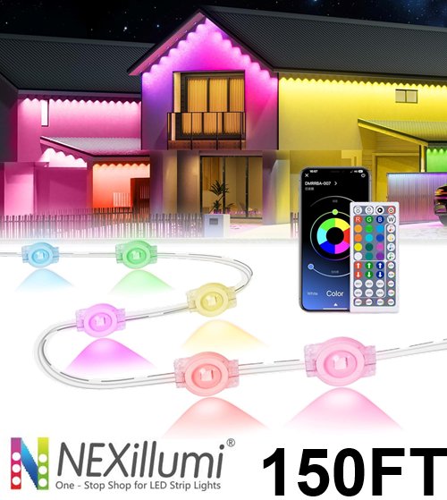 Nexillumi WATERPROOF Smart RGB Permanent Outdoor Lights for House - 150FT - MULTICOLORED