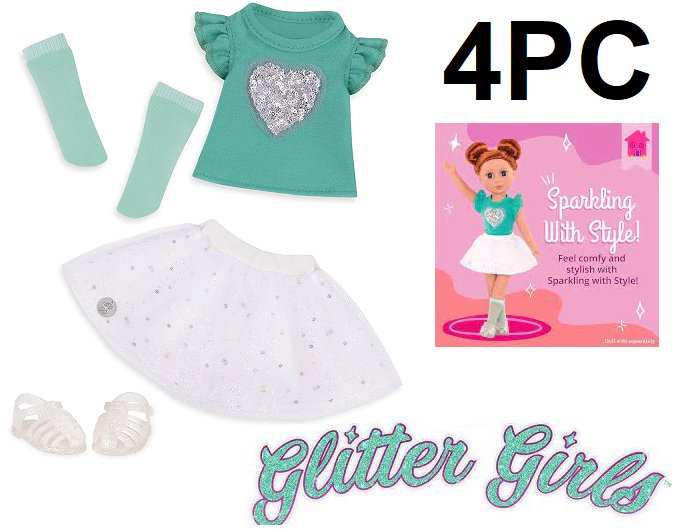 4PC GLITTER GIRLS Sparkling with style outfit accessory set - for glitter girls 14" dolls - blue/white/glitter