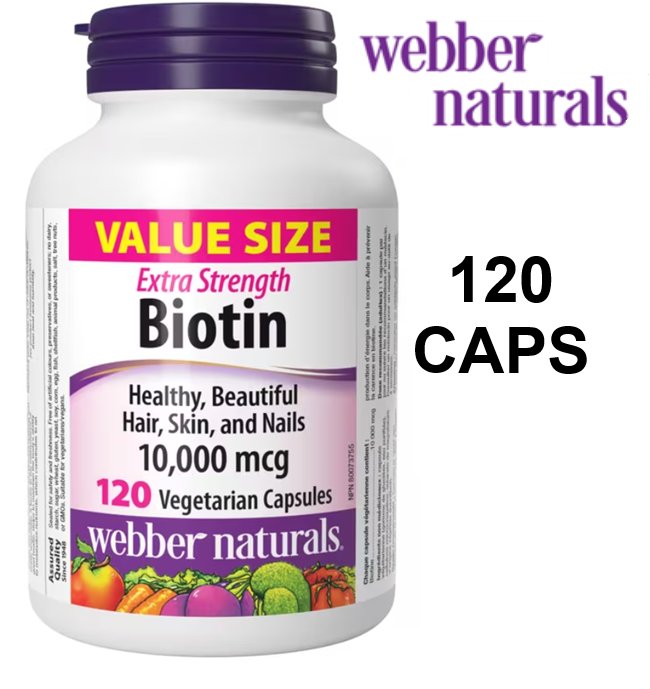 (120 CAPSULES) WEBBER NATURALS Biotin 10,000 mcg FOR HAIR SKIN AND NAILS