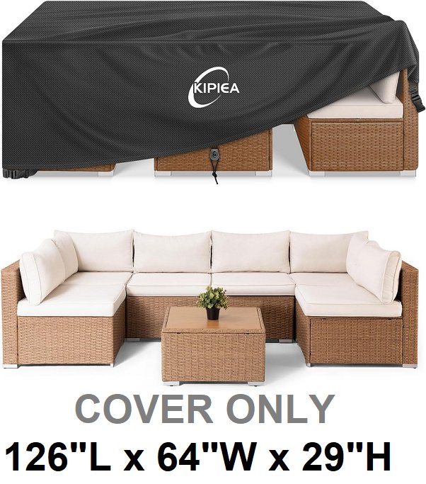 Kipiea Rectangular Patio Furniture Cover FOR Outdoor TablE AND CHAIR SETS - 126" X 64" X 29"- BLACK