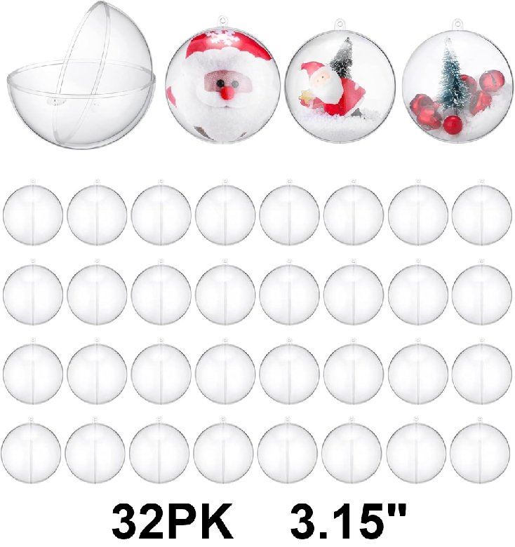 32PK Fillable Christmas Ornament Tree Baubles - 3.15" - CLEAR