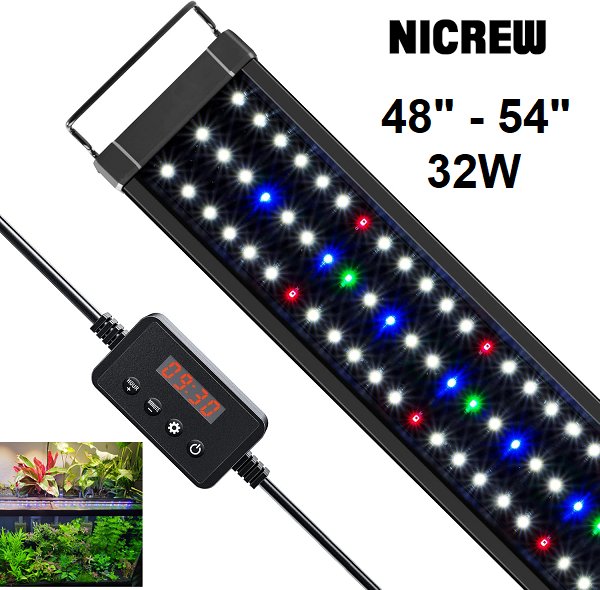 NICREW Classic LED Plus Aquarium Light with auto on/off and brightness timer with adjustable docking mount - 48" - 54" - 32W