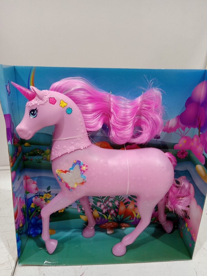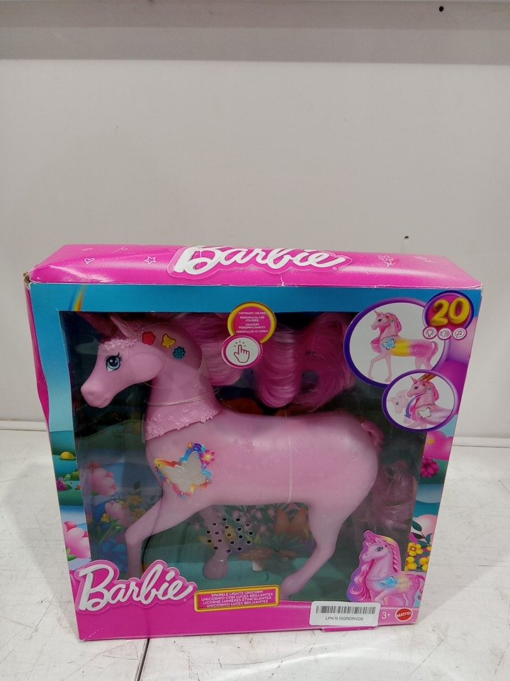 Barbie Sparkle Lights Toy Unicorn with 20 Interactive Combos of Lights, Sounds & Music - pink