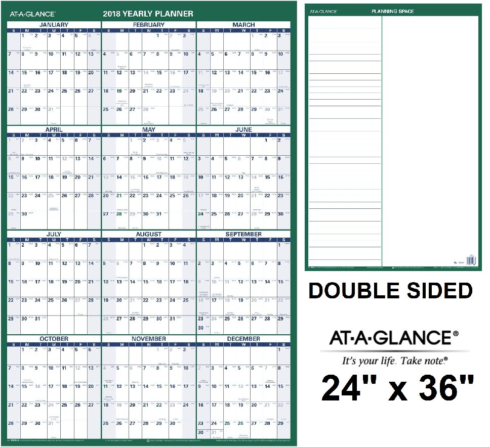 at-a-glance vertical wall calendar planner - double sided erasable schedule calendar for notes and planning - 24" x 36" - green (model: pm210-28)