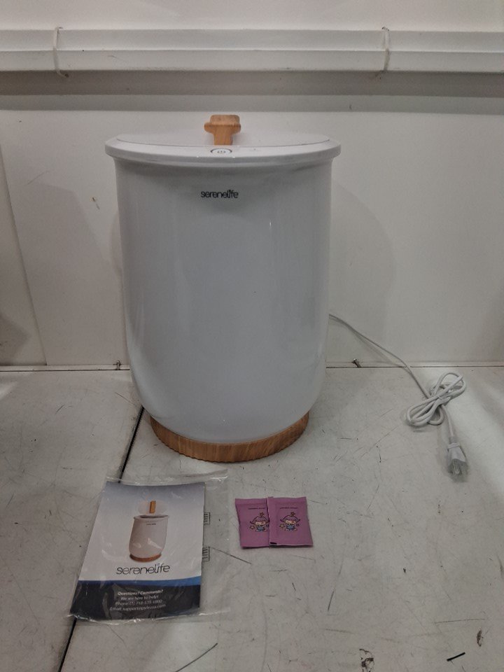 SERENELIFE TOWEL WARMER WITH QUICK HEAT TECHNOLOGY, large bucket for 2 large towels & more - 60 min run time (auto shut off) - White (Model: sltlw100)