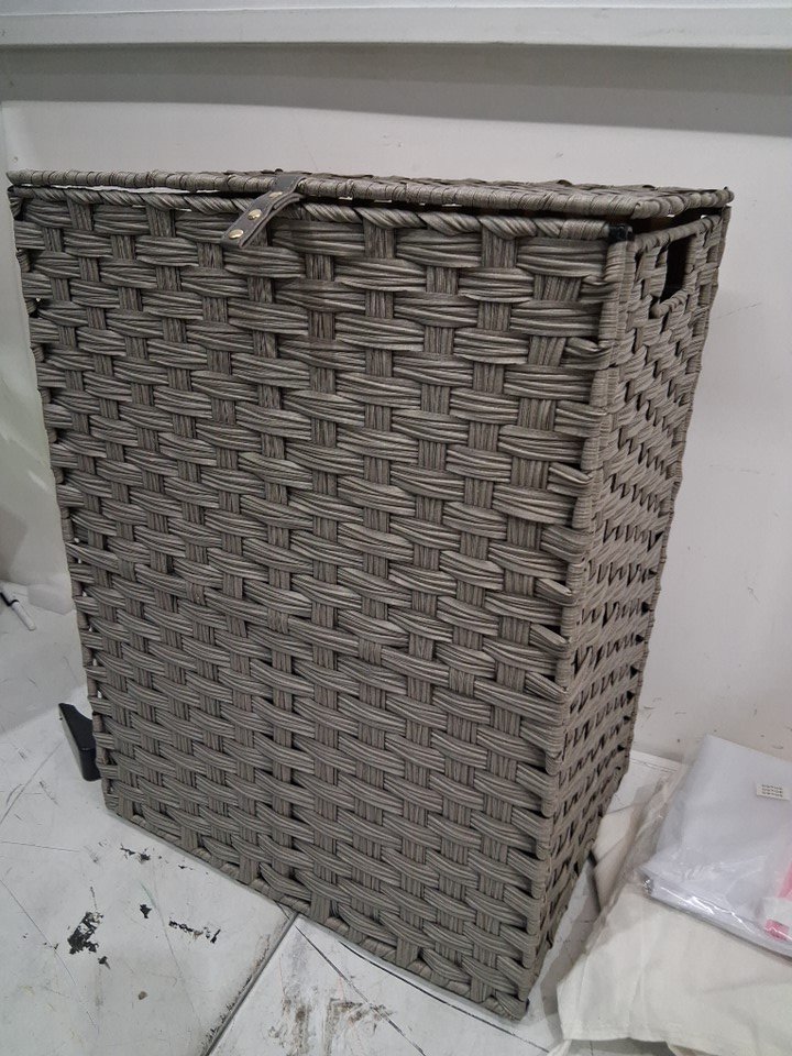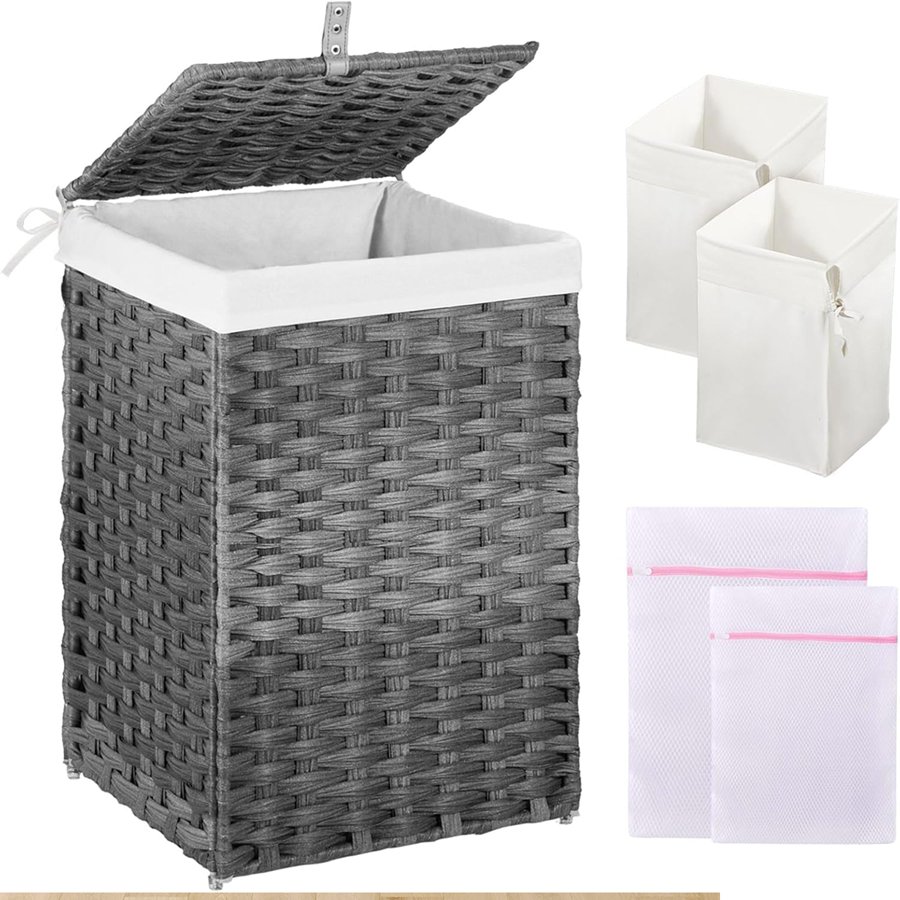 GREENSTELL Laundry Hamper with Lid 60L Clothes Hamper with 2 Removable Liner Bags & 8 Mesh Laundry Bags - 21.7" x 13.4" - GREY