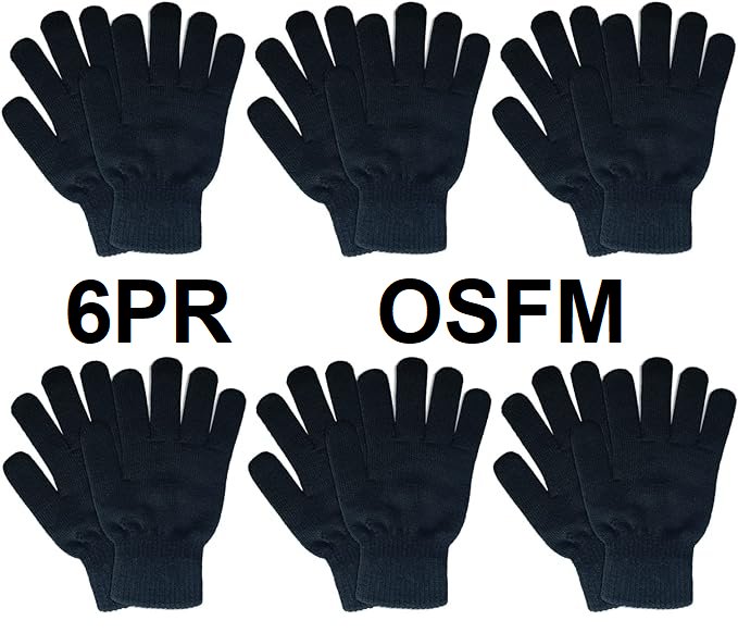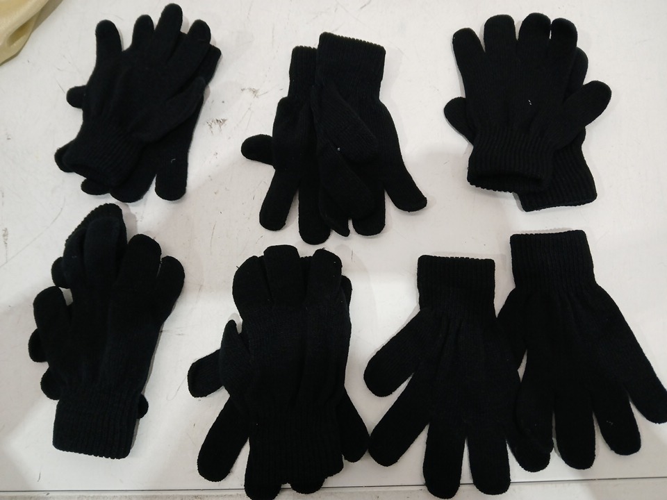 6PRS kids KNITTED WINTER GLOVES - ONE SIZE FITS MOST - BLACK