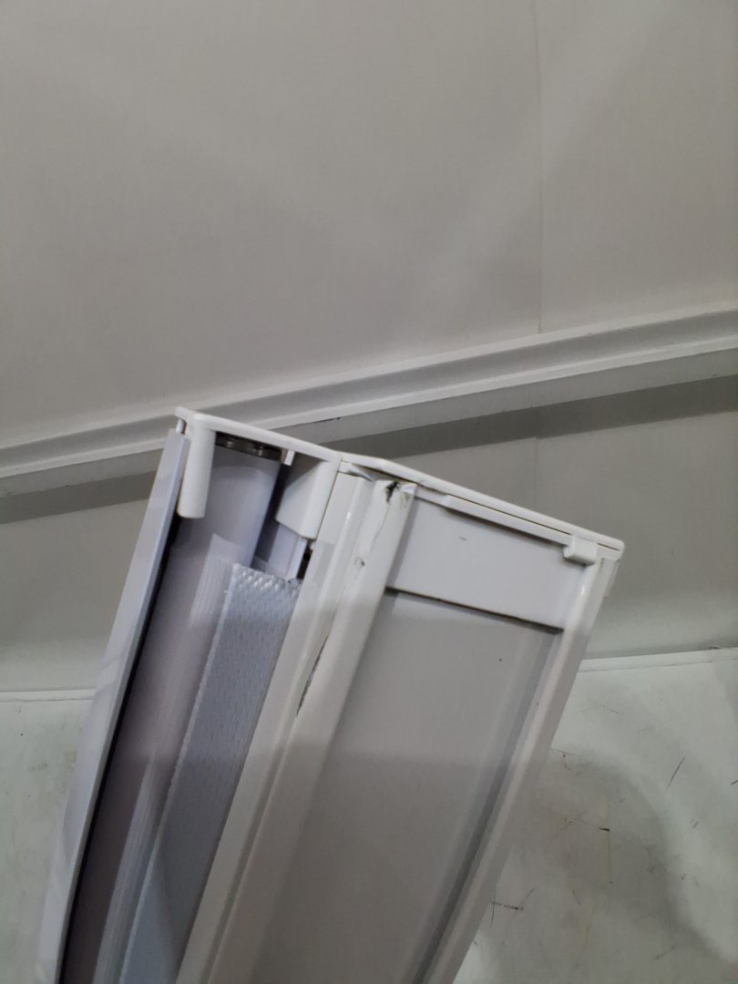 There is a dent on the top causing a bend in the metal frame, One of the ends has a dent in the metal. See photos